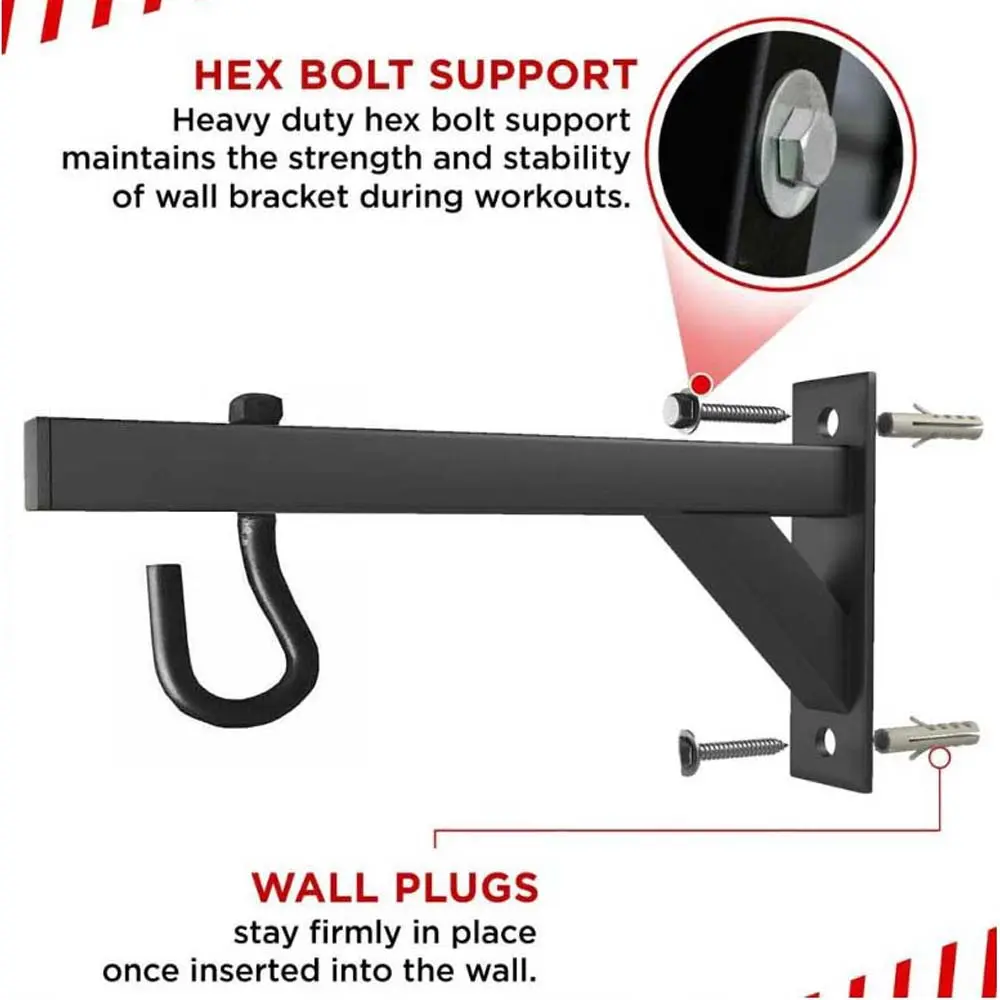 - 12” Wall Bracket suitable for small kids punch bag, made from welded 18-gauge powder coated steel for added strength and treated with Special Red Oxide anti-rust formulation.