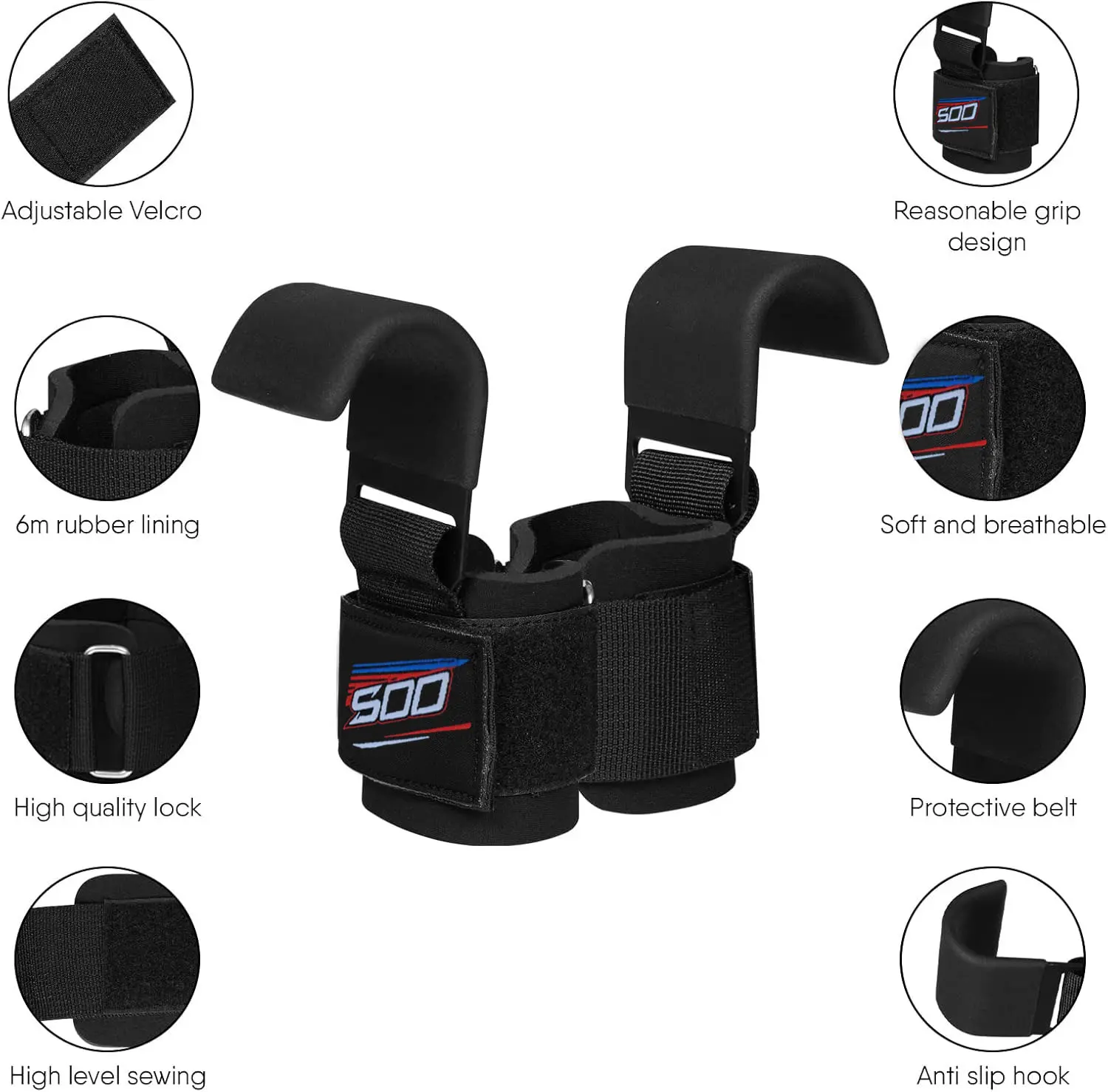• Curved hook design provides superior hold on bars and handles, reducing grip fatigue during intense workouts